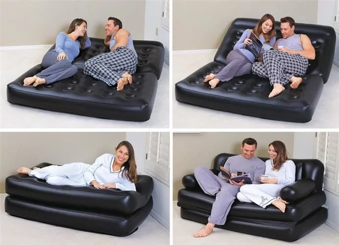 A praktikus felfújható kanapé kényelmes megoldást kínál a pihenésre otthon, a nyaralóban és a vendégek alkalmi elszállásolására. Az okos 5 az 1-ben kivitel lehetővé teszi, hogy könnyedén használhassuk kanapéként, napozóágyként vagy ágyként az aktuális igények szerint. A puha felület és a stabil szerkezet kényelmet biztosít üléskor és fekvéskor, míg a gyors szelep lehetővé teszi a könnyű felfújást és leeresztést.