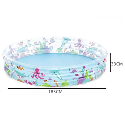 Kínálja meg a gyerekeket felfrissüléssel és sok szórakozással a forró napokon egy praktikus felfújható medencével. A tágas kerek kialakításnak köszönhetően elegendő helyet biztosít a vízi játékokhoz a kertben és a teraszon. Három külön felfújható gyűrű növeli a stabilitást és megkönnyíti a használatra való előkészítést. A medence nemcsak vízzel használható, hanem játékterületként is labdákkal vagy játékokkal.