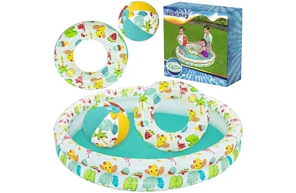 • 3 az 1-ben készlet – medence, felfújható gyűrű és labda egy csomagban