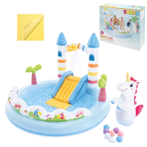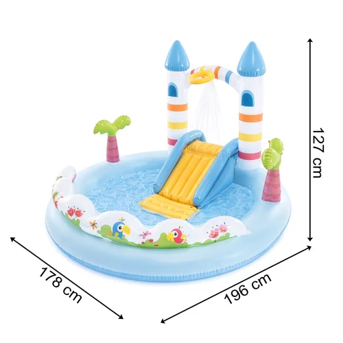 Meleg, unalom és energikus gyerekek? Ez a mesebeli kastély formájú felfújható vízi játszótér a kertjét egy kis aquaparkká varázsolja. Csak csatlakoztassa a kerti slagot, és kezdődhet a szórakozás.