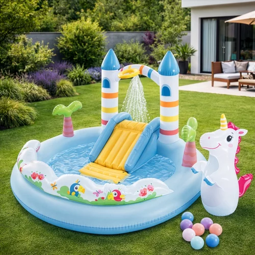 • Felfújható unikornis + labdák – több szórakozás egy készletben
