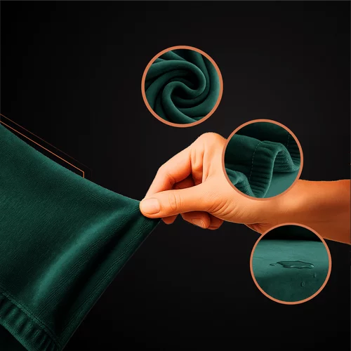 A RUHHY huzat puha és rugalmas velúr hatékonyan védi és felfrissíti a kanapét. Alkalmazkodik a bútor formájához, stabilan a helyén marad, és meleg és elegáns hangulatot kölcsönöz a belső térnek. A zöld szín sok belső stílussal harmonizál, és 145–185 cm méret a legtöbb standard sarokkanapéhoz illik.