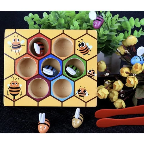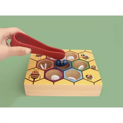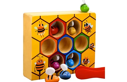 A méhecske elkapása egy szórakoztató és oktató játék, amely leköti gyermekét, és egyben támogatja fejlődését. A gyerekek finommotorikai készségeiket, a kéz-szem koordinációt és a tapintási érzékelést gyakorolják, miközben a méhecskéket csipesz segítségével fogják meg a fából készült méhsejtből. Minden méhecske más színű és filcből készült szárnyai vannak, ami serkenti a legkisebbek kreativitását és fantáziáját.