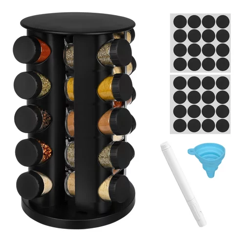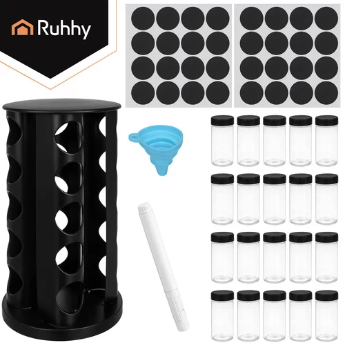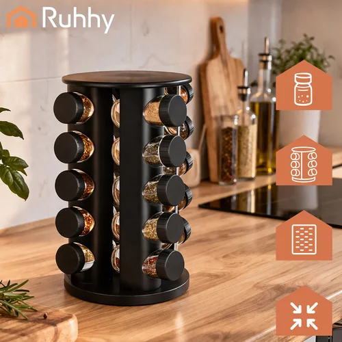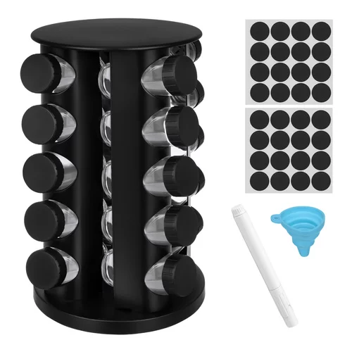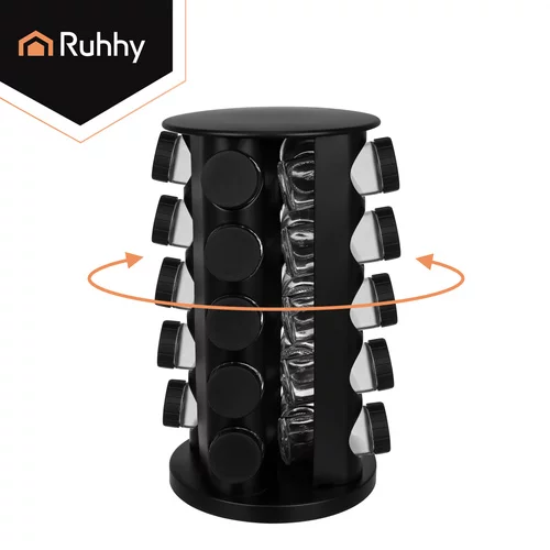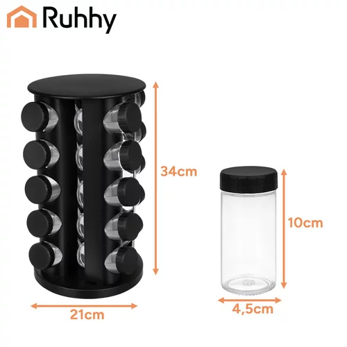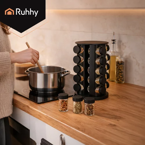 Szeretné rendet tartani a konyhában, és mindig gyorsan elérni a fűszereket? Ez a Ruhhy fűszertartó készlet forgatható állvánnyal praktikus és elegáns megoldást kínál a mindennapi főzéshez. A rendezett elrendezésnek köszönhetően kedvenc fűszereit mindig kéznél tarthatja, és a főzés gyorsabb és kényelmesebb lesz. A 360°-os forgatható állvány lehetővé teszi, hogy könnyen hozzáférjen az összes fűszertartóhoz, anélkül, hogy hosszasan keresgélne.