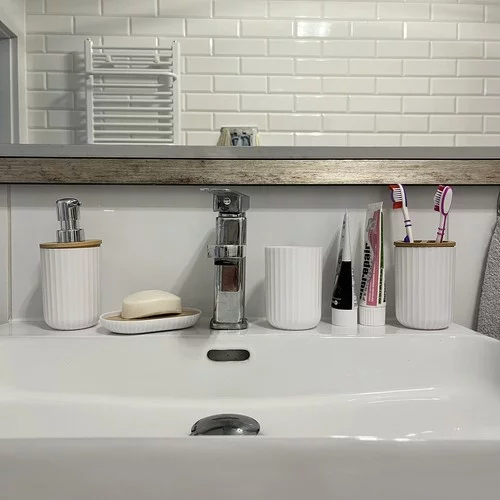 Magas minőségű 6 darabos fürdőszobai kiegészítő készlet ötvözi a funkcionalitást, eleganciát és modern dizájnt. A fehér szín bordázott felülettel és bambusz részletekkel stílust ad a fürdőszobának, miközben kényelmet és higiéniát biztosít a használat során. A készlet minden eleme praktikus, tartós és könnyen karbantartható használatra lett tervezve, ami ideálissá teszi a készletet mindennapi használatra, akár ajándéknak is.