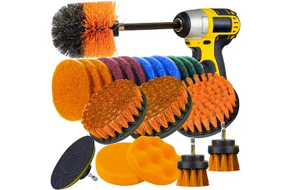 A 22 darabos tisztító, polírozó és felületkezelő készlet praktikus segédeszköz a műhelyben és otthon. Tartalmaz keféket, polírozó szivacsokat és nem szőtt textíliákat, amelyeket könnyen rögzíthet a fúróra vagy a 8 mm-es szárú csavarhúzóra. A készlet lehetővé teszi a felnik, fém és festett felületek gyors és hatékony tisztítását, valamint a szennyeződések polírozását és eltávolítását nehezen hozzáférhető helyekről a szár meghosszabbításának köszönhetően.