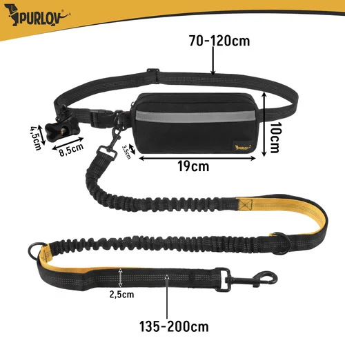 Praktikus futó öv kutyával lehetővé teszi a kutyával való aktív mozgást, anélkül, hogy a kezeinket korlátoznánk. A párnázott póráz ütéscsillapítóval és a állítható derékpánt biztosítja a kényelmet futás, gyaloglás és edzés közben, még nagyobb és erősebb kutyával is. A fényvisszaverő elemek, tartós anyagok és a teljes felszerelés ideális megoldást nyújt a mindennapi sétákhoz és sportos tevékenységekhez.