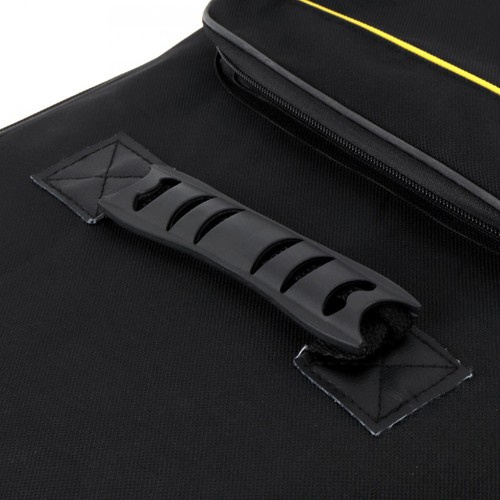 A gitártáska praktikus és tartós kiegészítő a zeneiskolások és a profi zenészek számára. A beállítható pántok segítségével a magasság beállítható a gyermekek és a felnőttek számára, így a kényelmes hordozás hosszabb távokon is biztosított. A tok sérülésálló, és védi a gitárt a mindennapi utazás során. Két zsebbel rendelkezik - egy felső zsebbel a kisebb kiegészítők, mint például a capo vagy a pengetők számára, és egy A4-es méretre alkalmas alsó zsebbel, ahol könnyedén tárolhat kottákat és kisebb tárgyakat. A táska legfeljebb 41 hüvelyk méretű gitárokhoz alkalmas, az alsó rész pedig megerősített, hogy biztonságosan szállítsa a felszerelését.