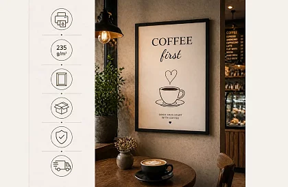 Élesítse fel belső terét egy elegáns kávémotívumú képpel, amely kellemes légkört és stílusos megjelenést hoz a térbe. A diszkrét dizájn és időtlen kivitelezés remekül kiegészíti a konyhát, étkezőt, irodát és a házi kávézót. A kiváló minőségű nyomtatás szilárd fotópapíron éles részleteket, élénk színeket és reprezentatív benyomást biztosít. A kép egyben remek választás eredeti ajándéknak minden kávérajongónak és ízléses dekorációnak.