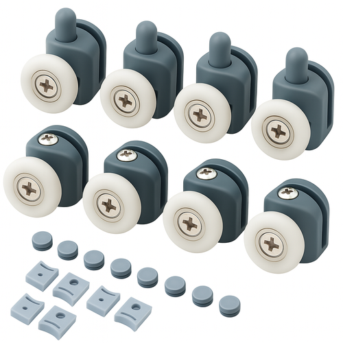 A felső és alsó kerekek készlete ideális a zuhanykabinok könnyű és sima nyitásához. A kerekek tartós műanyagból és korrózióálló fémből készültek, és a legtöbb zuhanykabinba illeszkednek. A rendszer lehetővé teszi a gyors cserét, a könnyű telepítést és az üveg eltávolítását tisztítás céljából a hengerek szétszerelése nélkül.