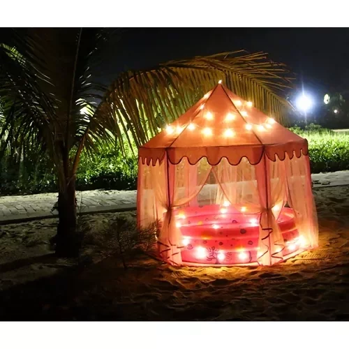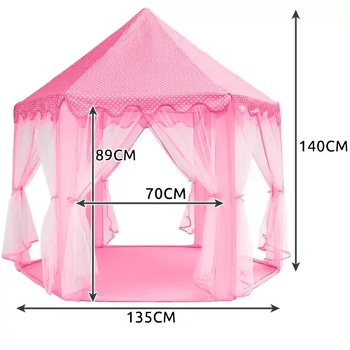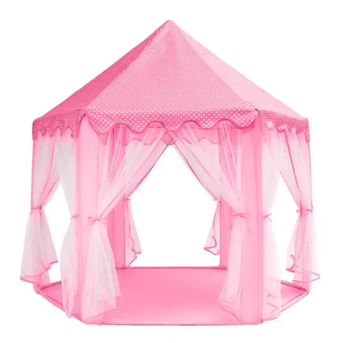 A tágas gyerek sátor elegendő helyet kínál több gyermek egyidejű játékához vagy kedvenc játékok, párnák és kiegészítők tárolásához. A hatszögletű alap, hat bejárat és piramis alakú tető vonzó dizájnja nemcsak szórakozást nyújt, hanem esztétikus megjelenést is a gyerekszobába vagy a kertbe. Az áttetsző függönyök varázst adnak és lehetővé teszik a bejáratok játékos irányítását.
