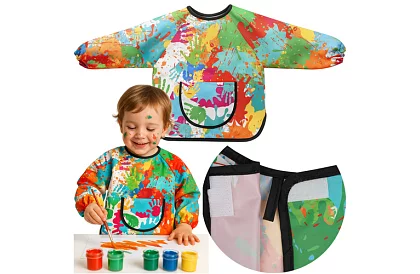 A praktikus festőköpeny védi a ruházatot a festéktől, ragasztótól és tintától, és lehetővé teszi a gyermek számára, hogy szabadon alkosson. Hosszú ujjak és laza szabás teljes védelmet nyújt, míg az elasztikus mandzsetta és a hátsó állítható zár biztosítja a kényelmes viseletet. Az egyszerű karbantartás és a tartós anyag lehetővé teszi a hosszú távú használatot otthon és az óvodában. A színes dizájn felkelti a kis művészek figyelmét, és motiválja őket az aktív játékra és a kreatív alkotásra.