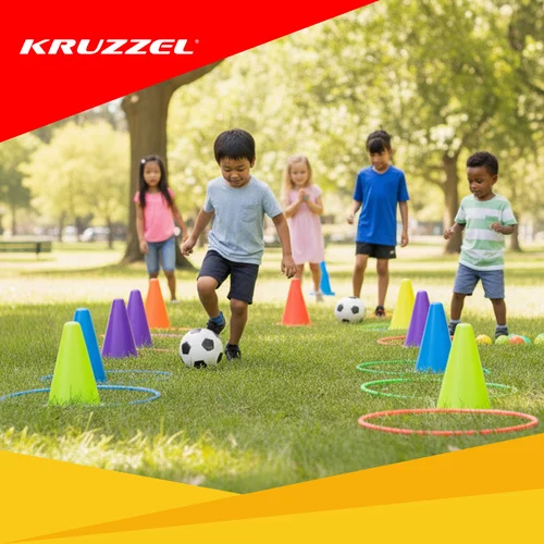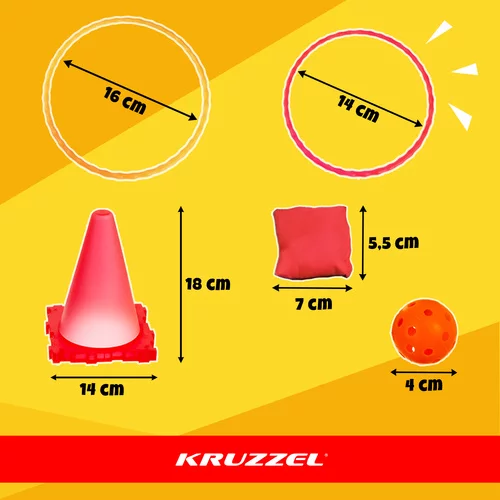 Fejleszti koordinációt, motorikus készségeket és figyelmet szórakoztató mozgás révén. A színes kúpok, karikák, labdák és táskák felkeltik a gyerekek figyelmét és támogatják aktív játékukat otthon, kint és az edzőteremben. A készlet megfelelő ajándéknak, amely ötvözi a tanulást a játékkal és motiválja a gyerekeket, hogy újra és újra visszatérjenek a játékhoz.