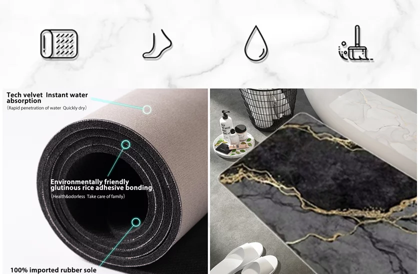 Nedvszívó, gyorsan száradó szőnyeg nem csak a fürdőszobába. Házának minden szobáját díszíti majd. Rendkívül kellemes szőnyeg nem csak a fürdőszobába, innovatív nedvszívó habból. Hatékonyan véd a hideg padlótól, mivel kényelmet biztosít a kádból, illetve a zuhanyból való kilépés során A csúszásgátló réteg megakadályozza a balesetet.