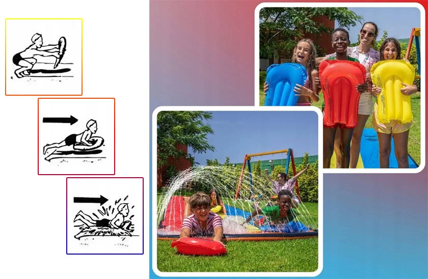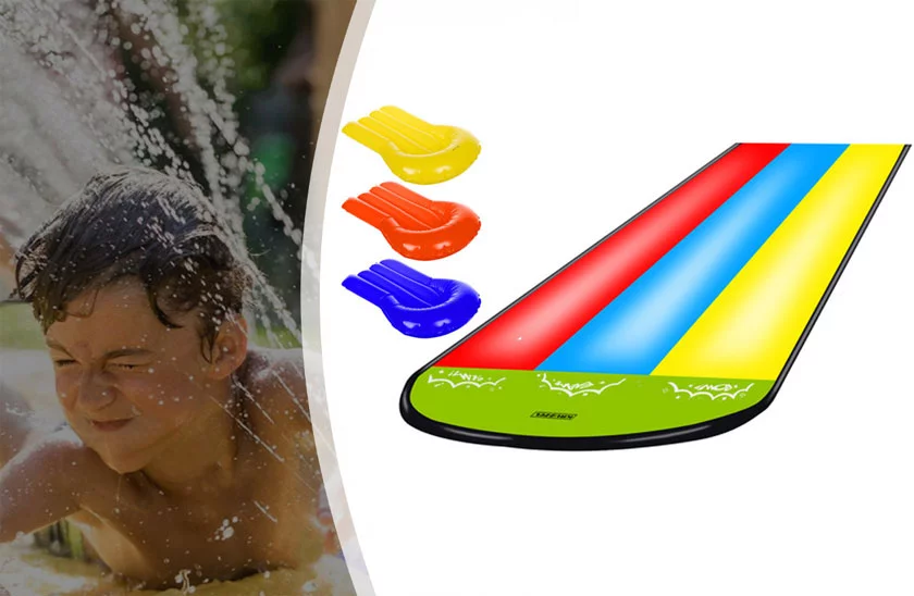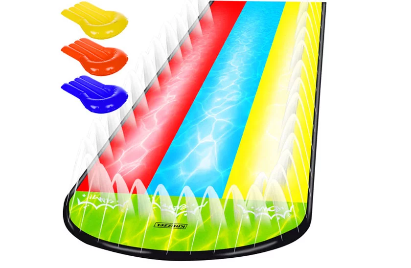 Tökéletes izgalmas versenyekhez vagy egy nyugis lecsúszáshoz – a sima felületnek és a minőségi anyagoknak köszönhetően minden csúszás gyors és kényelmes. Csak csatlakoztasd a kerti slagot, és a szökőkút gondoskodik a frissítésről és extra csúszásról.