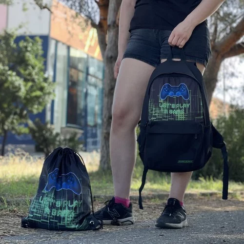 Tartós és kényelmes hátizsák kifejező játéktervezéssel, amely ötvözi a praktikus kapacitást, a tartalom védelmét és a kényelmet a mindennapi használat során. Alkalmas iskolába, szabadidőre és sportra, kiegészítve egy összehangolt cipőtáskával vagy tornazsákkal, amely bővíti a felhasználási lehetőségeket anélkül, hogy további csomagolásra lenne szükség.