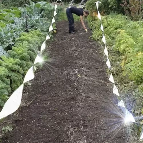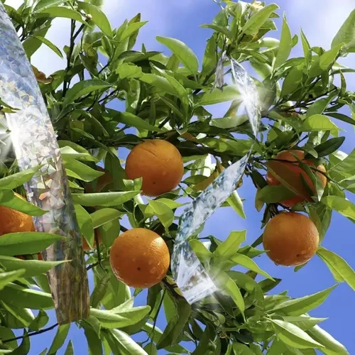 A praktikus holografikus szalag ideális a növények, kertek, erkélyek vagy épületek védelmére. Reflexiós felülete háromdimenziós hatást kelt, és különböző irányokba veri vissza a fényt, így hatékonyan elriasztja a madarakat és a kis állatokat anélkül, hogy kárt okozna nekik. A vízálló anyag lehetővé teszi a hosszú távú kültéri használatot.