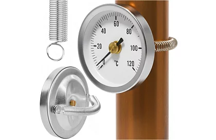 Gyorsan és bonyolult telepítés nélkül kaphat áttekintést a cső hőmérsékletéről. A praktikus megoldás pontos mérést kínál folyadékok és gázok esetén közvetlenül a cső felületén. A olvasható számlap lehetővé teszi a azonnali leolvasást, és a minőségi anyagokból készült tartós szerkezet hosszú élettartamot biztosít. A rugós rögzítésnek köszönhetően a telepítés néhány másodpercet vesz igénybe szerszámok nélkül, amit a háztartási és technikai rendszerekben is értékelni fog.