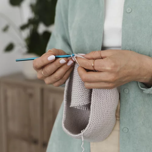 A készlet 10 ergonomikus horgolót tartalmaz különböző méretekben (0,6–6,5 mm), mély horgolóval, amely megakadályozza a fonal csúszását és akadását. A fogantyú kényelmes formája miatt a horgolás kényelmes még hosszabb munka során is.