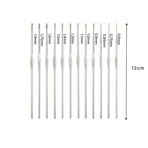 • 21 horgolótű 0,6–6,0 mm méretben különböző projektekhez