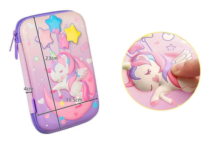 Aranyos, praktikus és készen áll minden iskolai kalandra! Ez a sokoldalú tolltartó finom rózsaszín színben, 3D egyszarvús mintával első pillantásra elvarázsolja a gyerekeket, és örömet szerez minden kis fantáziavilág-rajongónak.