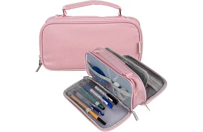 Két tolltartó tartós poliészterből készült, amely ötvözi a szilárdságot, sokoldalúságot és stílust. Hosszú távú védelmet nyújt az iskolai vagy irodai kellékek számára, és a praktikus fogantyúnak köszönhetően könnyen szállítható, ami ideálissá teszi a mindennapi használatra otthon, az iskolában vagy utazás közben.