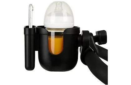 Praktikus 2v1 tartó csecsemőpalackok és okostelefonok számára – ideális sétákhoz és kirándulásokhoz babakocsival. Univerzális és stabil szerkezet biztosítja a biztonságos rögzítést egyenetlen terepen is, egyben helyet takarít meg és mindent kéznél tart.
