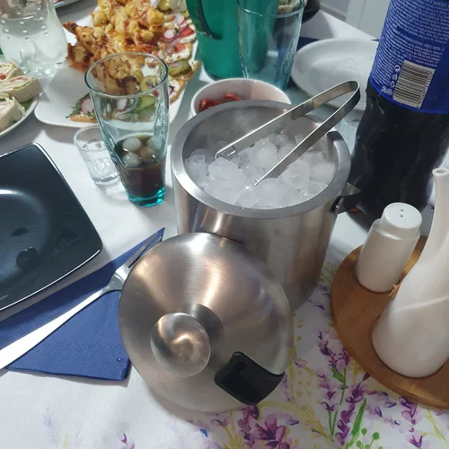 Praktikus és elegáns segédeszköz a hűtött italok kedvelőinek. Ez a dupla falú tároló hosszabb ideig megőrzi a jeget, így élvezheti a frissítő italokat még a barátokkal töltött hosszabb találkozók során is. A 1,3 literes nagy kapacitásának köszönhetően elfér benne a jégkocka, egy üveg bor vagy dobozos ital, és a praktikus csipeszekkel és kanállal mindig kéznél van minden szükséges.