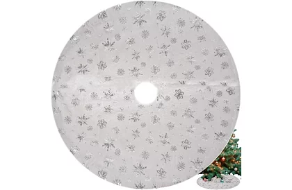 Dekoratív karácsonyi alátét varázslatos téli hangulatot ad a fának és az egész szobának. A nyomtatott ezüst csillagok és hópelyhek kiemelik az ünnepi dekorációt, és illeszkednek bármilyen karácsonyi stílushoz.