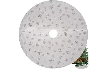 Dekoratív karácsonyi alátét varázslatos téli hangulatot ad a fának és az egész szobának. A nyomtatott ezüst csillagok és hópelyhek kiemelik az ünnepi dekorációt, és bármilyen karácsonyi stílussal harmonizálnak.