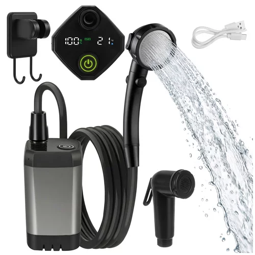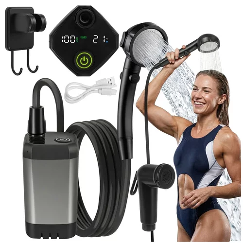 Élvezze a kényelmes higiéniát bárhol – úton, a táborban vagy a kertben. A beépített akkumulátor és szivattyú révén független vízforrást kap áram és vízvezeték nélkül, így bármikor élvezheti a zuhanyzást, amikor szüksége van rá. A LCD kijelző, állítható áramlás és hosszú tömlő maximális kényelmet biztosít a használat során. A kompakt kialakítás és az egyszerű töltés USB-C porton keresztül teszi ezt a zuhanyt ideális társává minden kalandhoz.