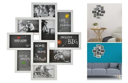 A fényképkészítő keret praktikus módja annak, hogy akár 10 fényképet is kiállítsunk egy helyen. Az eredeti kollázs hatás és az elegáns fehér szín stílust és karaktert ad a belső térnek, miközben helyet takarít meg a különálló keretekhez képest. A műanyag szerkezet biztonságot nyújt még gyermekes vagy háziállatos háztartásokban is.