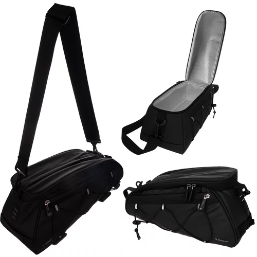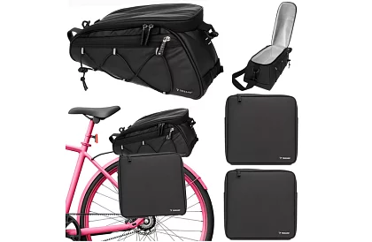 Praktikus kerékpáros táska akár 16 literes térfogatával kényelmesen szállíthatja a ruhákat, ételeket, szerszámokat vagy dokumentumokat. Középső táska termos funkcióval tartja az ételek és italok hőmérsékletét, ideális piknikekhez és kerékpáros kirándulásokhoz. A táska vállon hordható, az egyes részek könnyen rögzíthetők a hordozóra tépőzárral és karabinerekkel. Vízálló konstrukció és reflexív elemek biztosítják a biztonságot és megbízhatóságot esőben vagy éjszaka is. A táskák élelmiszerekkel való érintkezésre engedélyezettek, így biztonságosan szállíthatók az ételek.
