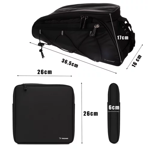 • Középső táska méretei: 16 × 36,5 × 17 cm