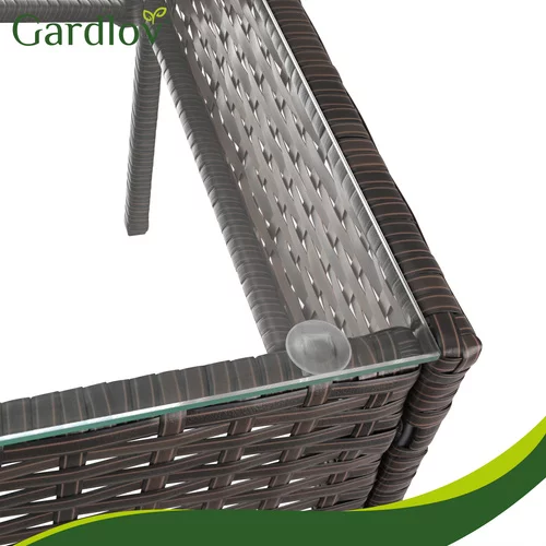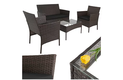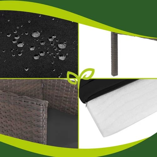 A stílusos kerti bútor szett technorattanból kényelmes pihenőhelyet teremt a teraszon, erkélyen vagy a kertben. A masszív horganyzott acél szerkezet, ellenálló technorattan és kényelmes ülőpárnák kényelmet és hosszú élettartamot biztosítanak kültéri használatra. A praktikus üveglapos dohányzóasztal ideális helyet biztosít italok, desszertek vagy apró falatok elhelyezésére. Az elegáns barna kivitel könnyen illeszkedik különböző kültéri terekbe, és segít kellemes pihenőhelyet kialakítani a család és barátok számára.