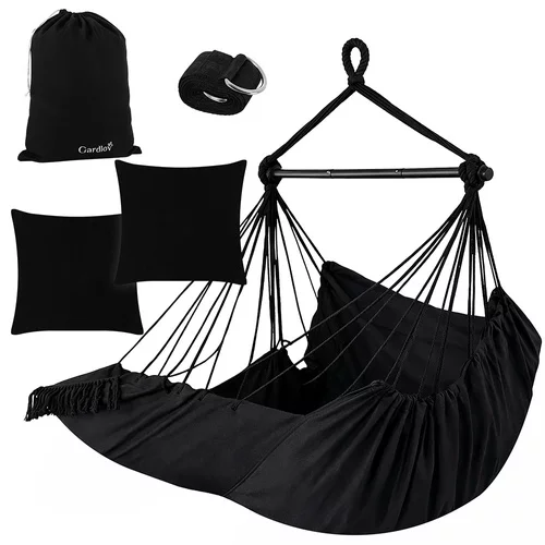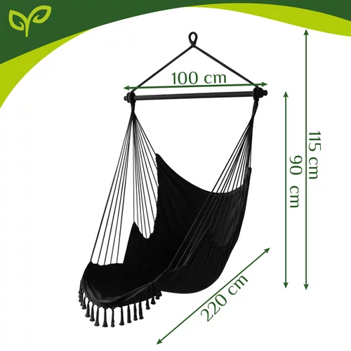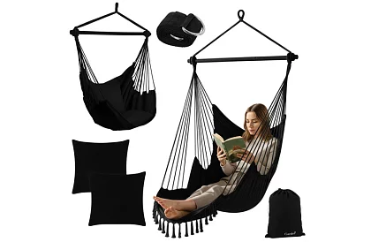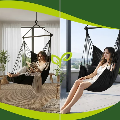 A kertben, erkélyen, teraszon vagy a nappaliban a maximális kényelmet és pihenést nyújtó függőfotel. A tartós pamut anyag és a stabil fémrúd biztonságos hintázást és kényelmes ülést vagy fekvést biztosít. A két puha párna azonnali kényelmet nyújt, és a szék ergonomikus formája támogatja a helyes testtartást. Remek választás olvasáshoz, pihenéshez vagy egy nyugodt pillanatnyi relaxációhoz.