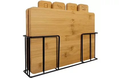 A praktikus bambusz vágódeszka készlet áttekinthetőséget, higiéniát és kényelmet hoz a mindennapi étel előkészítésbe. Minden deszka saját célra van tervezve, ami segít megelőzni a keresztszennyeződést és tisztán tartani a konyhát. A kompakt állvány révén a deszkák mindig kéznél vannak, és nem foglalnak el felesleges helyet. A természetes bambuszfa tartós, antibakteriális, és nemcsak vágásra, hanem snackek tálalására is alkalmas.