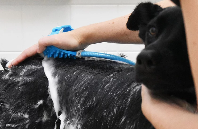 Kényeztesse kedvenc háziállatát frissítő zuhannyal és nagyszerű masszázzsal egyben! A zuhany a kertben található vízellátáshoz, de például a fürdőszobában található csaphoz is csatlakoztathatja. A zuhanyzó kényelmes mosókefével rendelkezik, amely a kiemelkedések által kellemes masszázst biztosít