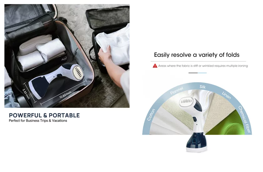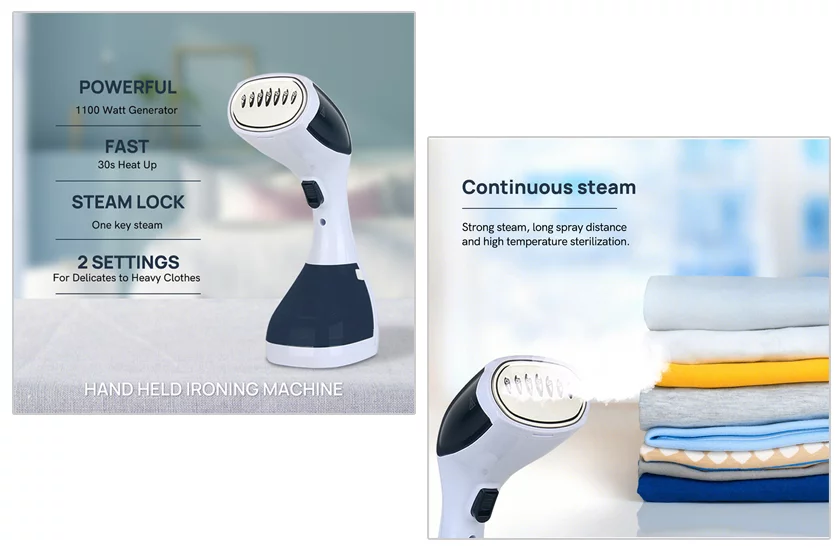 A párás ruhagőzölő pillanatok alatt friss megjelenést kölcsönöz a ruhának. Ideális segítő a mozgalmas reggeleken. Mondjon búcsút a vasalódeszkával és a vasalóval való küzdelemnek. A kézi gőzölő könnyen megbirkózik nemcsak a ruhák gyűrődéseinek kisimításával, hanem könnyedén rendbe teszi vele a függönyöket, anélkül, hogy le kellene venni őket a függönytartóról, esetleg heverőre és ágyneműre is használhatja. Nagyon jól kivasalja a ruhákat a vállfán is.