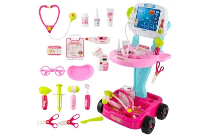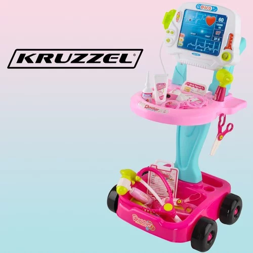 Szórakoztató orvosi játék készlet kerekes kocsival, amely lehetőséget ad a gyerekeknek, hogy orvos szerepébe bújjanak, fejlesszék a fantáziájukat, empátiájukat és szociális készségeiket, miközben természetesen megismerkednek az egészségügyi ellátással. Gazdag felszerelés, fény- és hanghatások és mobil kivitel támogatja a hosszú távú, kreatív és ismétlődő játékot otthon és a szabadban. Ideális kombináció tanulás és szórakozás, amely első pillantásra magával ragadja a gyerekeket a játékba.