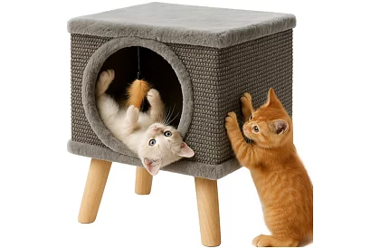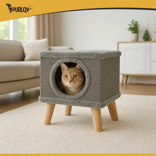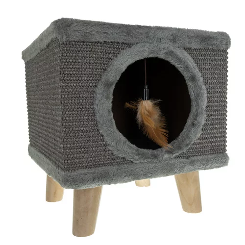 Praktikus megoldás minden macska számára kaparófa és kényelmes fekhely egyben. A stabil szerkezet és a kiváló minőségű anyagok stabilitást biztosítanak intenzív játék közben, míg a puha belső tér ideális pihenőhelyet kínál. Természetes szizál lehetővé teszi a biztonságos karomélezést és segít megvédeni a bútorokat. Kompakt méretének és modern megjelenésének köszönhetően tökéletesen illeszkedik bármilyen belső térbe.