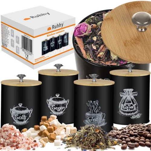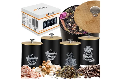 Stílusos és praktikus megoldás a konyha áttekinthető szervezésére és az élelmiszerek hosszú távú tárolására. Elegáns kombinációja a matt fekete acélnak és a bambuszfedélnek modern megjelenést kölcsönöz a belső térnek, míg a szoros zárás megvédi a tartalmat a nedvességtől és a frissesség elvesztésétől. Ideális mindennapi használatra, valamint dizájn kiegészítőként a konyhapulthoz.