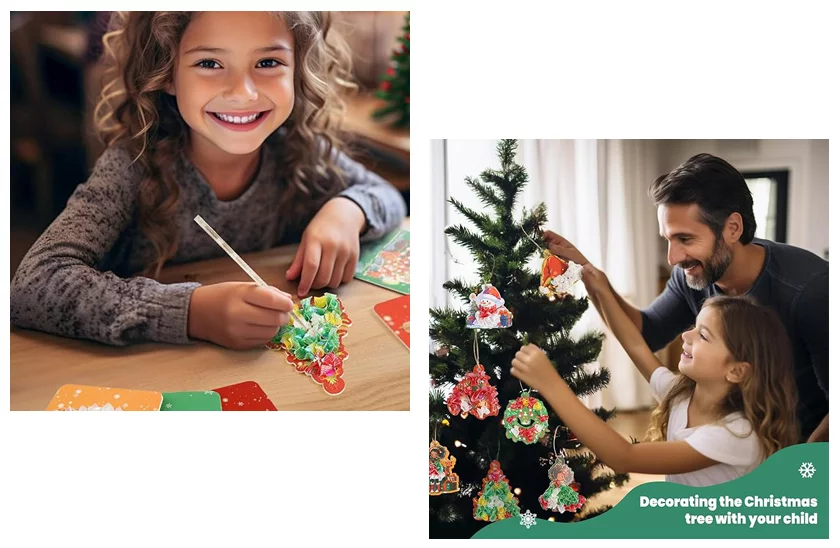 Tessék ráhagyni a gyermekekre a művész alkotást, és engedje szabadon, hogy díszítsék fel karácsonyfát. Ötletes és művészi kifejezésmódot inspirál azáltal, hogy színes és texturált műalkotásokat hoz létre. A képeket ezután ki is lehet állítani. Csodálatos ajándék gyermekei számára.