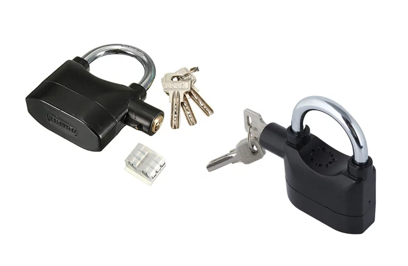 Masszív lakat integrált riasztástóval, a durva kezeles aktiválja 110 db hangos, átható riasztást. Nagyon kényelmes módja a garázsok, nyaralók, motorkerékpárok, csónakok, kerékpárok biztosítása lopás ellen.