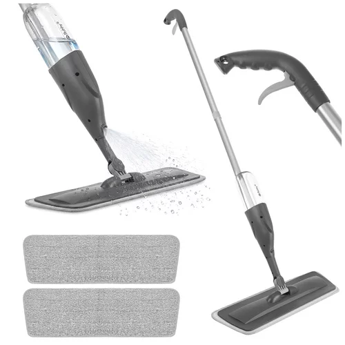 A padló tisztítása most gyors, kényelmes és vödör nélkül, köszönhetően a spray mopnak. A beépített 300 ml-es tartály lehetővé teszi a folyadék pontos adagolását ott, ahol szükséges, és a 360°-ban forgatható fej biztosítja a könnyű hozzáférést a bútorok alá, a sarkokba és a szűk helyekre. A könnyű és ergonomikus dizájn nagy tisztítópanellel felgyorsítja a takarítást, és a három újrahasználható takarító rongy hatékonyan eltávolítja a port, szennyeződéseket és a hajat.