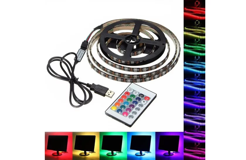 A TV-nézés közvetett megvilágításának leghatékonyabb és legegyszerűbb módja, ha LED készleteinket a TV mögé alkalmazzuk. Ezek a készletek RGB szalagokat tartalmaznak, amelyek bármilyen színben ragyoghatnak. A készletben található távirányítóval kényelmesen kiválaszthatja a LED szalag színét és teljesítményét. Az RGB szalagnak elegendő teljesítménye van ahhoz, hogy hangulatvilágításként is szolgáljon, amikor éppen nem néz tévét. A LED szalag az egyszerű szerelés érdekében 3M ragasztószalaggal van ellátva.