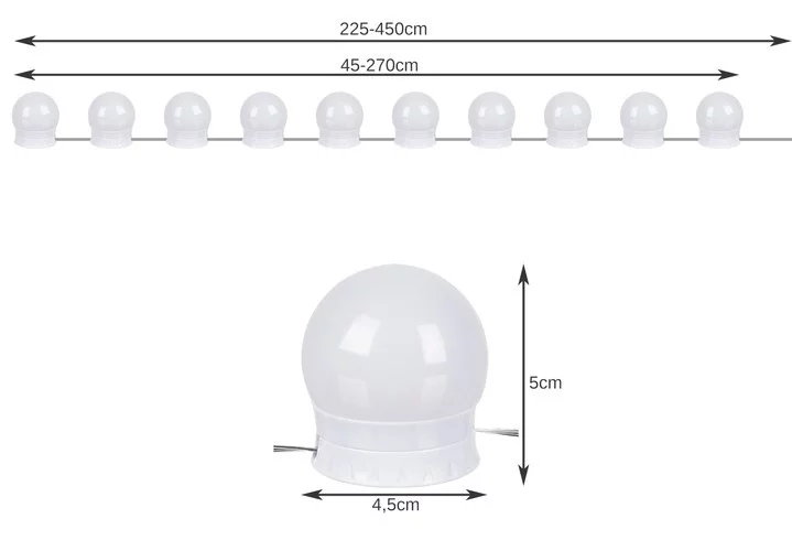 A praktikus USB LED lámpa készlet tökéletes világítást kínál a sminkasztalához vagy tükörhöz. Három fényárnyalat – hideg fehér, nappali fény és meleg fehér – és 10 fényerőszint segítségével könnyedén beállíthatja az ideális világítást sminkeléshez, frizura igazításhoz vagy dekoráláshoz. Az energiatakarékos LED lámpák tartósak, törhetetlenek és rugalmasak – a kábel hossza akár 25 cm-re is beállítható az egyes lámpák között, ami lehetővé teszi lenyűgöző kompozíciók és elrendezések létrehozását.