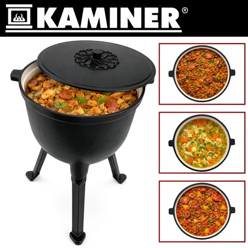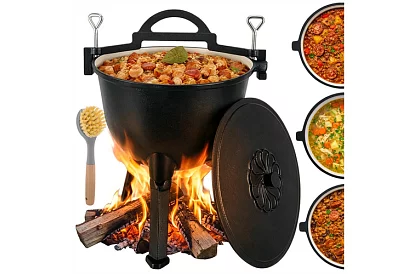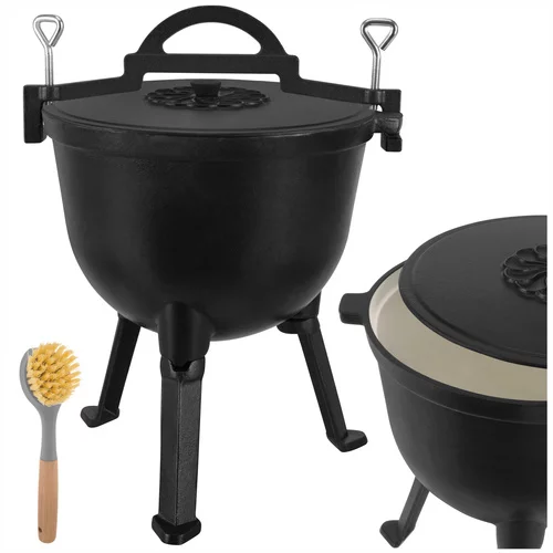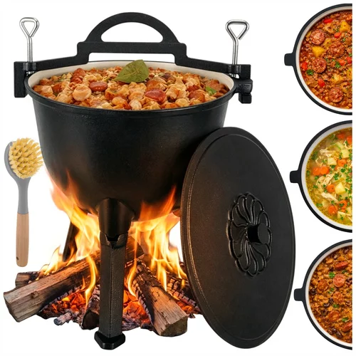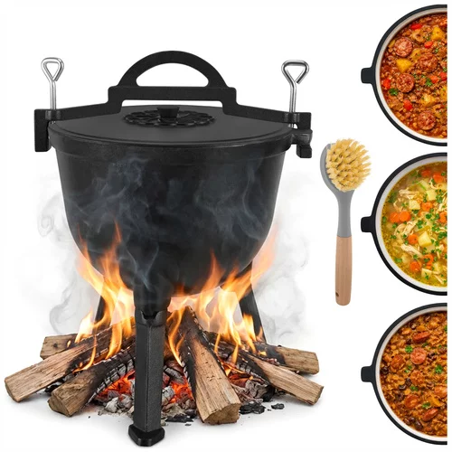 A tűzön való főzés könnyű és biztonságos lehet egy öntöttvas bogrács esetében, amely 10 literes, egyenletes hőeloszlást és magas hőmérsékletnek való ellenállást kínál. Az enamelezett belső rész megkönnyíti a tisztítást, és megszünteti a szükségességét a minden használat után történő impregnálásnak. Ideális kiadós ételek készítésére táborban, kandallóban vagy a kertben, a bogrács a funkcionalitást kényelmes kezelhetőséggel ötvözi, kivehető lábakkal és praktikus fogantyúval.