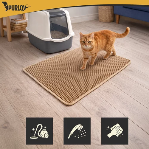 Unod van, hogy a macska WC látogatása után a macskaalmot szétszórva találja a lakásban? Ez a kétszintes alátét felfogja a macska lábairól lehulló szemcséket, és segít tisztán tartani a WC környékét anélkül, hogy naponta söpörni kellene.