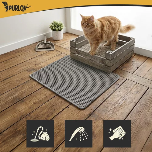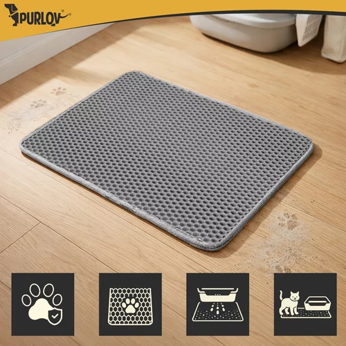 Unja, hogy a macska WC-jének minden látogatása után a lakásban szétszórt alom már nem szórakoztat? Ez a 60 × 45 cm-es Purlov alátét felfogja a tappancsokról lehulló granulátumokat, és segít tisztán tartani a WC körüli területet – anélkül, hogy folyamatosan sepregetni kellene.